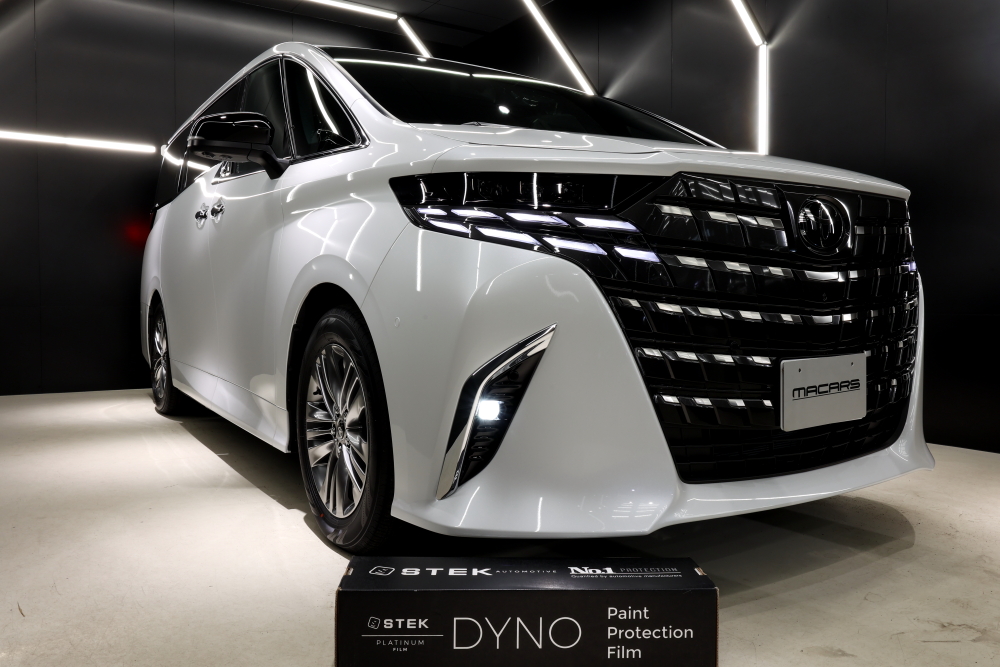 こんばんはNISHIOです。 さて常連様よりSTEKペイントプロテクション・フィルム施工のご依頼を頂きましたのでご紹介! 今回は、新型アルファードのフロントフェイスを劇的に引き締める「STEK DYNOcloud」の施工…