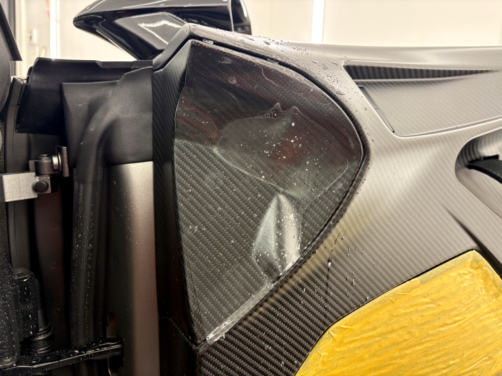 内装のカーボンパネルも全てマットPPF施工を行いました。