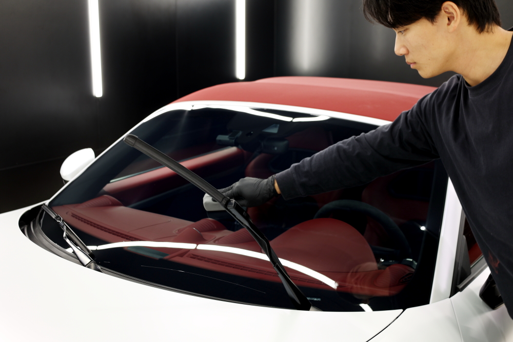 ウインドウも同様に塗り込み・拭き上げを丁寧に行います。
